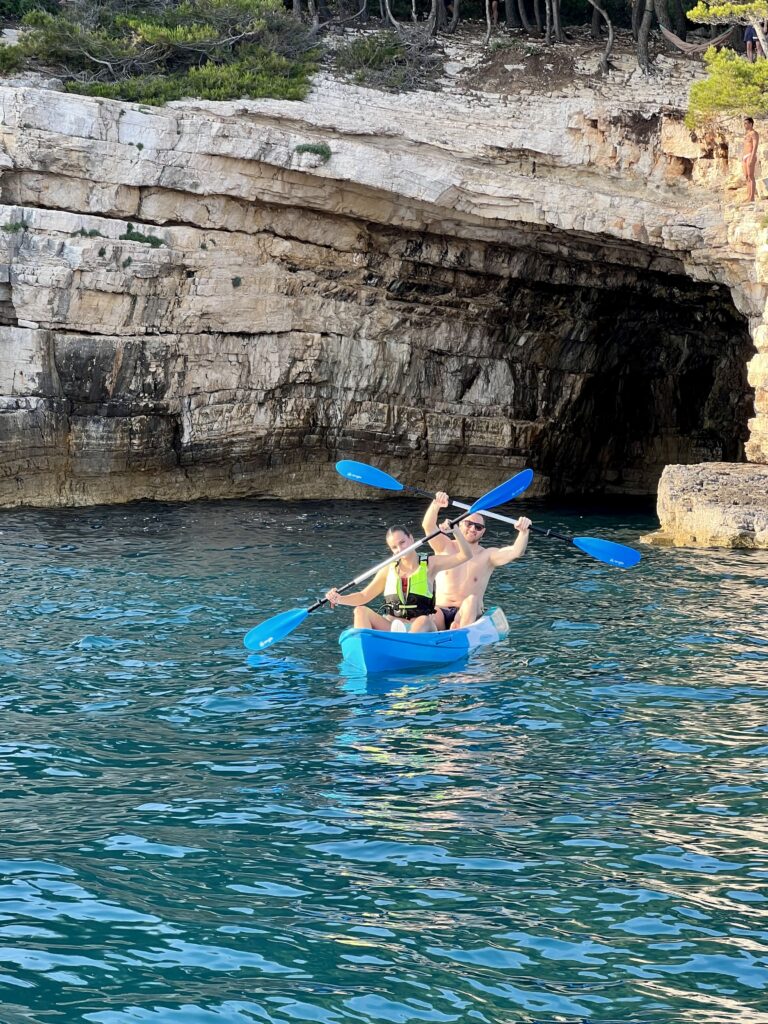 Join us and discover one of the best things to do in Pula. This unforgettable 3-hour kayak adventure takes you along Pula’s stunning coastline, where you’ll paddle through crystal-clear waters, go snorkeling, explore sea caves, including the famous Seagull’s Rocks, and even cliff jumping.